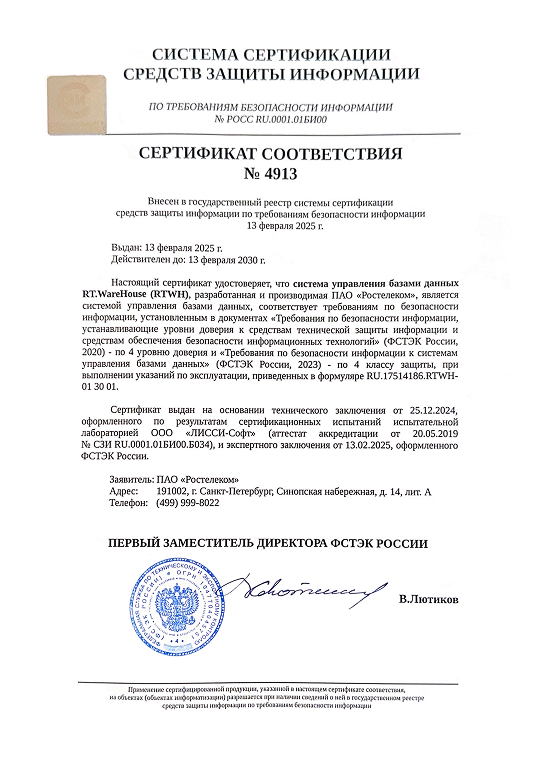 Поскольку RT.Warehouse поддерживает сложные запросы, обрабатывающие большие объемы данных, в том числе сложные аналитические функции, она эффективно может использоваться для построения корпоративного хранилища данных, BI-аналитики, AD-HOC запросов и data science